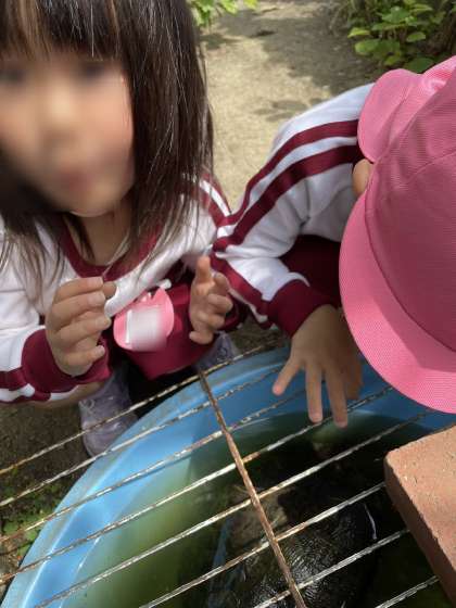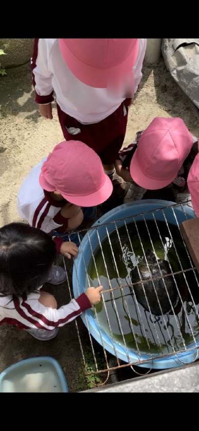 さくら組さんがカメにごはんをあげてくれました。お腹がへっていたのかな?パクパク食べるカメさんにびっくり!思わず拍手も出ていました♪
