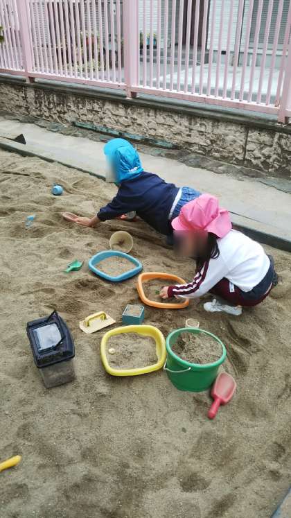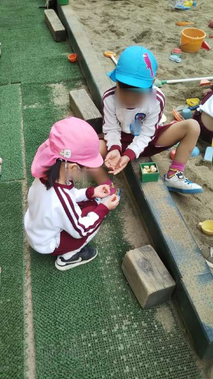 今日は少〜し肌寒さもありましたが、子どもたちは元気に園庭で遊んでいました。あやめもさくらも仲良し!クラスを越えて関われるのが素敵ですね☆