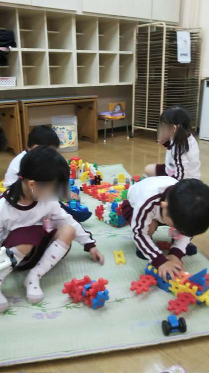 今日は保育参観でした。残念ながら雨で園庭では遊べませんでしたが、保育室でしっとりと遊んでいました。