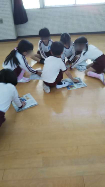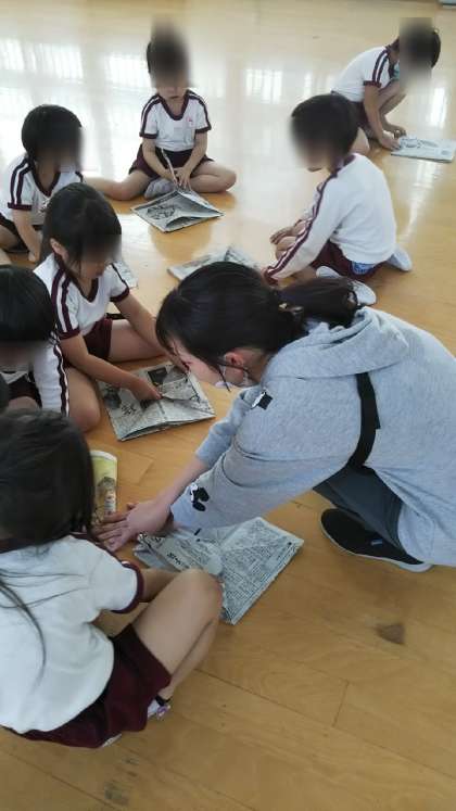 あやめ組が五月人形を見て、かぶとを折っていました。ちょっと難しいな…。もうすぐ完成!?一生懸命折っていました。