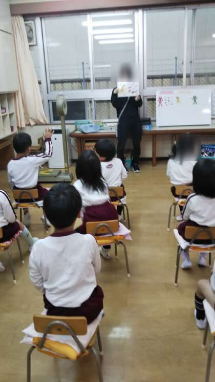 今年度初のあやめ組の保健指導は「三色栄養」の話でした。赤、黄、緑の食べ物の役割とどんなものがあるかを再度確認。その後、今日の黒潮弁当のメニューを見ながら、「カレーコロッケは何色のたべるんじゃーかな?」「チャプチェの中に何がはいってるかな?何色のたべるんじゃーがいるかな?」と、みんなで考えました。しっかり食べて、スーパーたべるんじゃーになってね☆