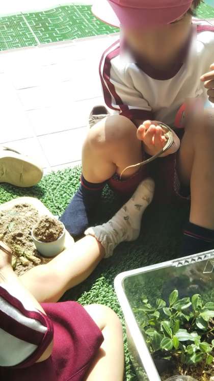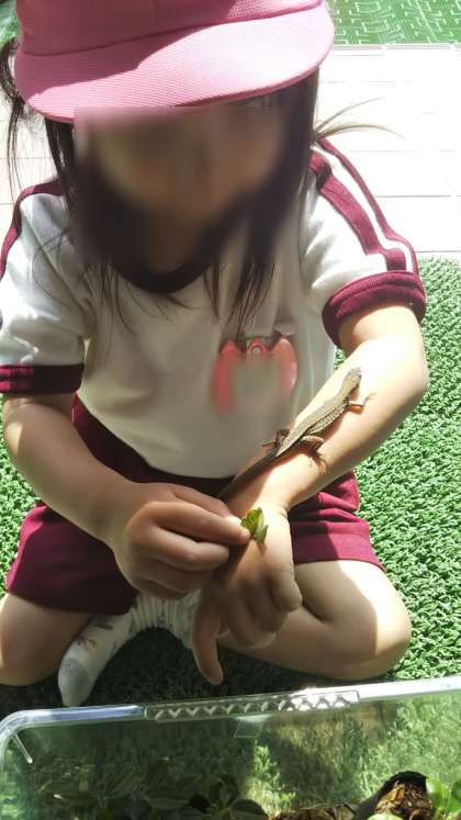 カナヘビさんと日なたぼっこ 公開日 2023/05/22 更新日 2023/05/22 子どもの生活 カナヘビを日なたぼっこさせていると、「かわいい」「さわりたい」と子どもたちがきました。と、いうことで、カナヘビを手にのせながら、一緒に日なたぼっこです。 いいね(0)