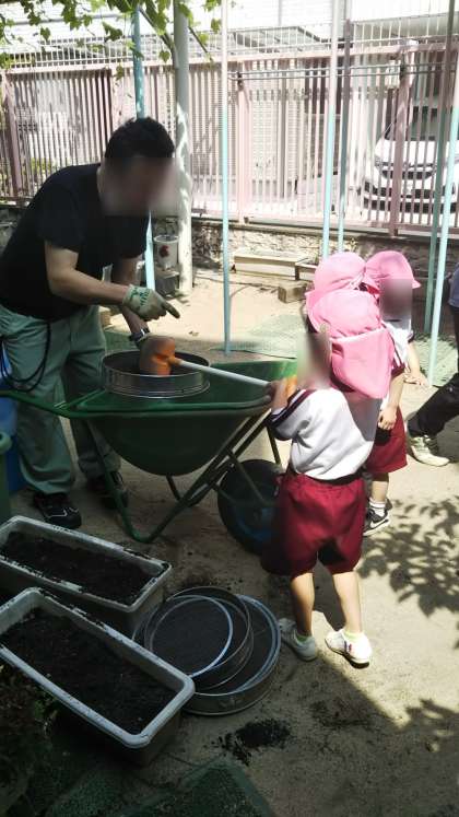 働き者! 公開日 2023/05/22 更新日 2023/05/22 子どもの生活 野菜や花を植えるための土づくりを主事補さんがしてくださってました。さくら組の子どもたちが「やりたい」とお手伝い。とっても働き者の子どもたちでした☆ いいね(0)