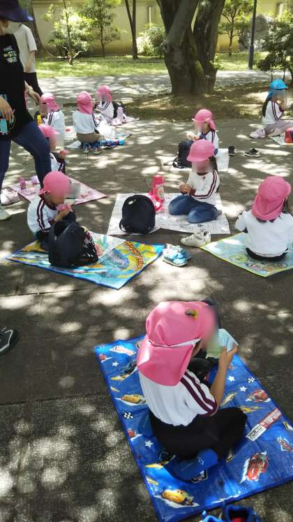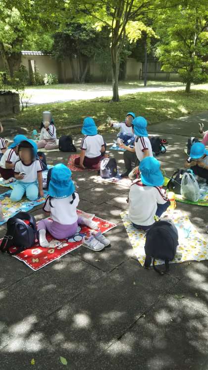 いっぱい遊んでおなかもペコペコ。お楽しみのおにぎりタイム♪みんな自分のおにぎりを嬉しそうにみせてくれました!