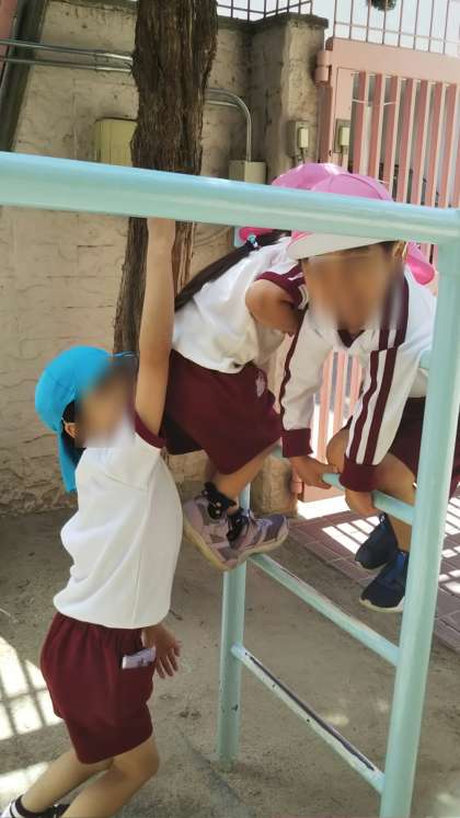 今日は暖かな日差しのなかで、みんな元気に遊んでいました!うんていをしている子どもたちの写真をとっていると、「ここはサルの国です」「たくさんのサルがすんでいるサルの国です♪」と嬉しそうに話してくれました。今日のうんていおサルさんがいっぱいだったようです。