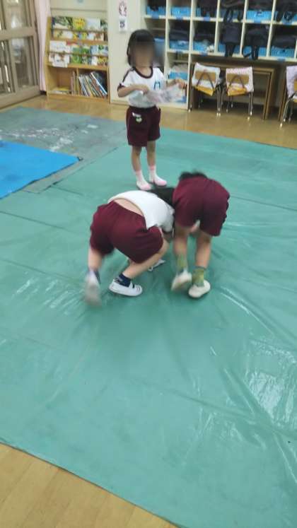 絵の具が終わったあとはみんなで片付け。シートもきれいに拭いていました。