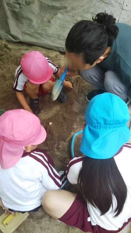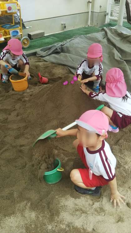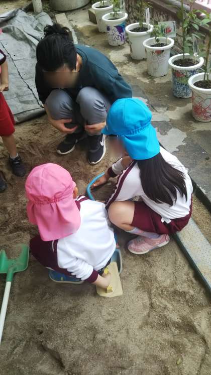 誕生会のあと、砂場で「◯◯君の誕生日ケーキつくってるねん!」と嬉しそうに教えてくれました。誕生日だった子どもも「僕は◯先生に作ってる!」と今月誕生日で一緒にお祝いした先生に作っていました。