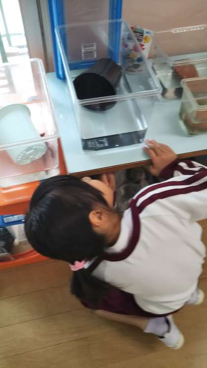 幼稚園にザリガニさんがきました♪子どもたちは興味津々。大きいな!さわりたい!赤ちゃんザリガニかわいい…とよく見ていました。