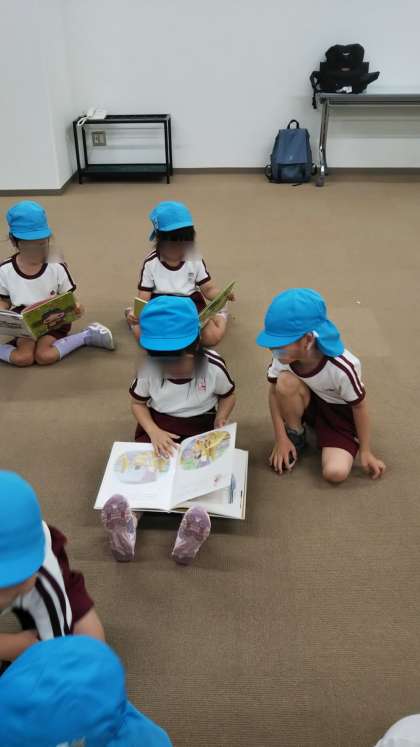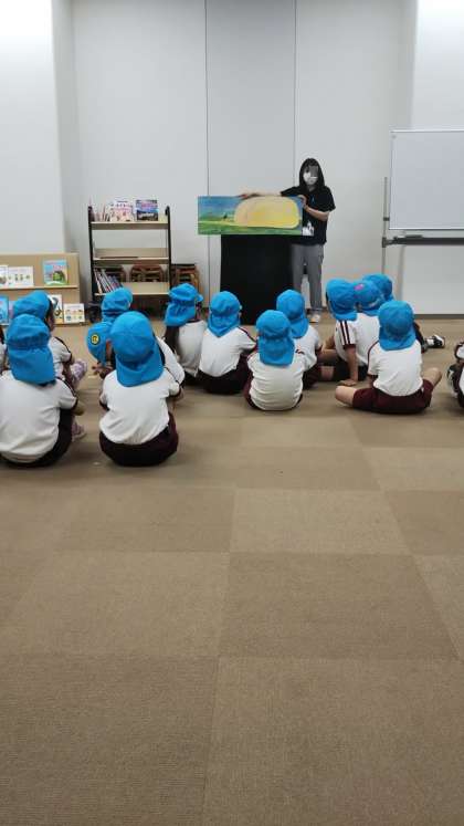 最後は図書館の方が大型絵本を読んでくださいました。楽しかったけれど、まだまだ見ていたかったようで、「もっと見たいー」「まだ読みたいー」の声もあがっていました。