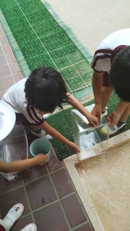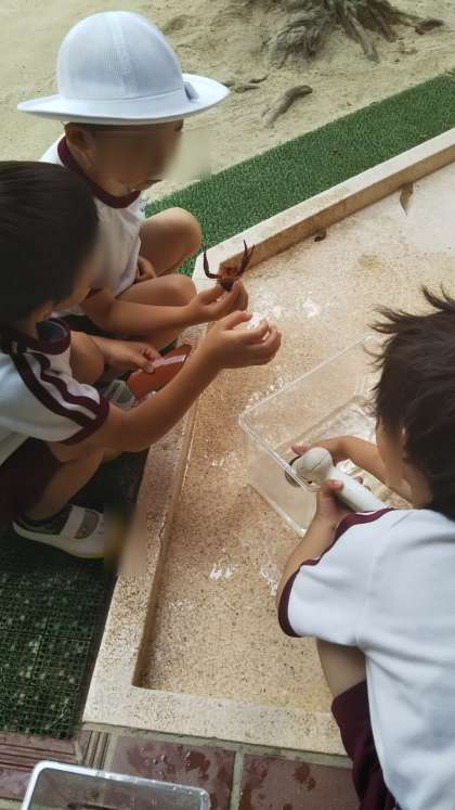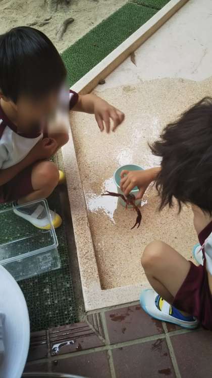 今日は大好きなザリガニさんのお世話を一緒にしてくれました。水をかえたり、洗ったりと楽しそうにしていました。