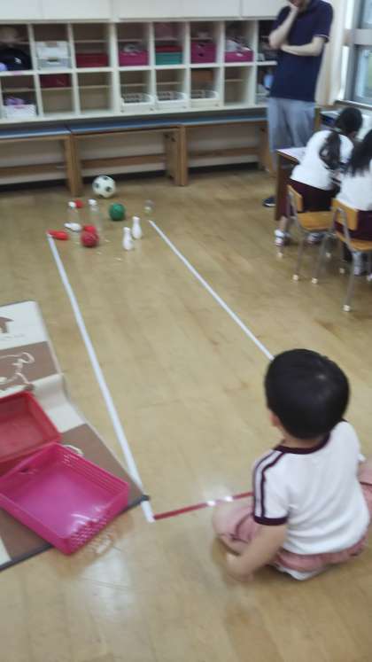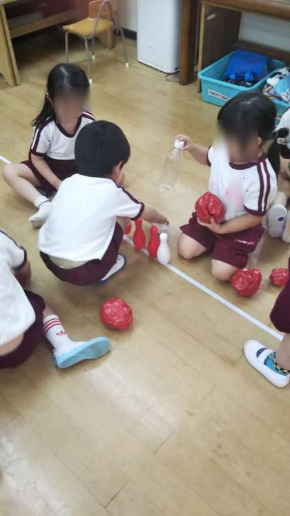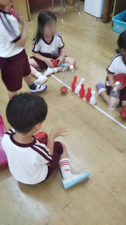 さくら組はボーリングをしていました。まだまだお試し中ですが、ピンが倒れると大喜びでした。おまつりごっこでみんなに来てもらおうね。