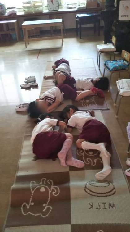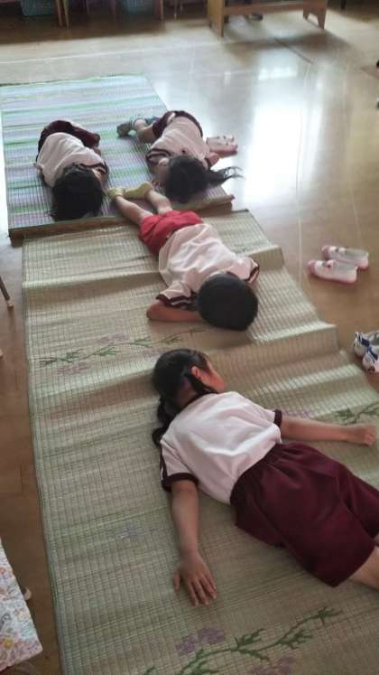 プールでたくさん遊んだあとは休息タイム☆さくら組さんおやすみなさーい!