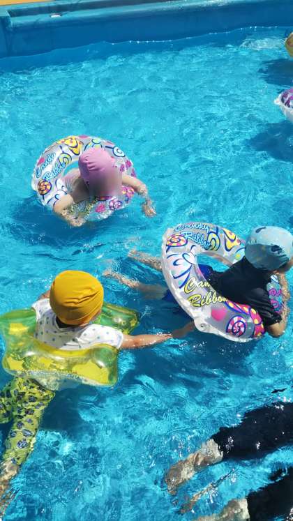 わにさん歩きでフープをくぐったり、浮き輪で遊ぶのも楽しそうでした。