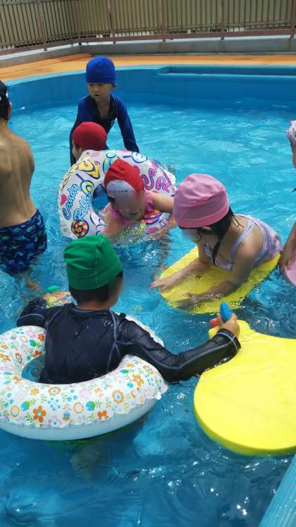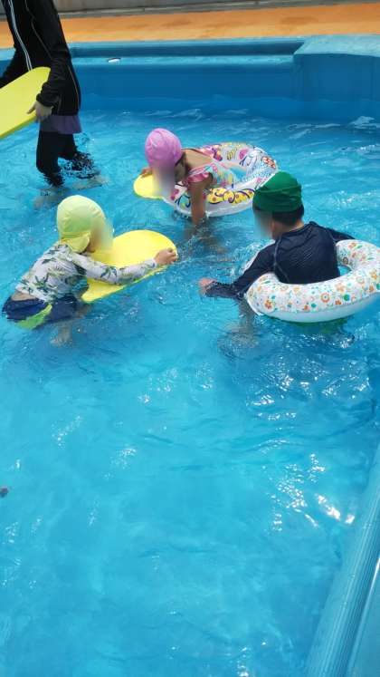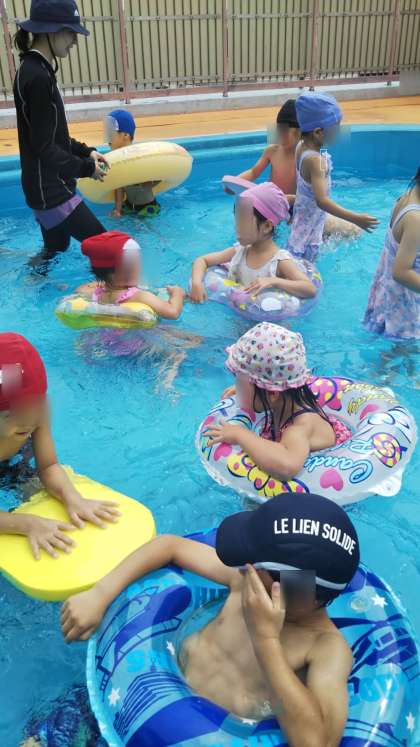 今日は天気が心配でしたが、気温、水温ともに入水オッケー!雨も降ってないので、短い時間でも…とプールに入りました!どんどん晴れてきて雨予報がうそのよう。存分に楽しみました。