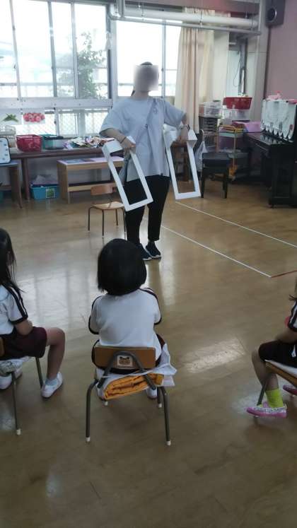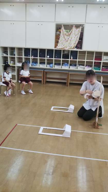 さくら組の保健指導は「和式トイレの使い方」でした。養護教諭がしゃがみ方や