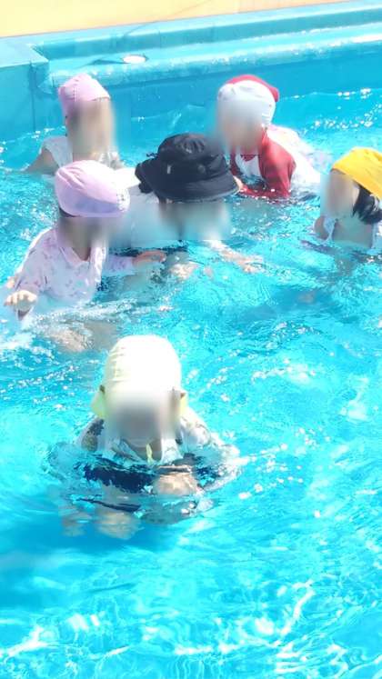 夏休み1日目、今日はプール開放でした。とてもいい天気の中、あやめ組もさくら組も一緒にはいってたくさん遊びました!