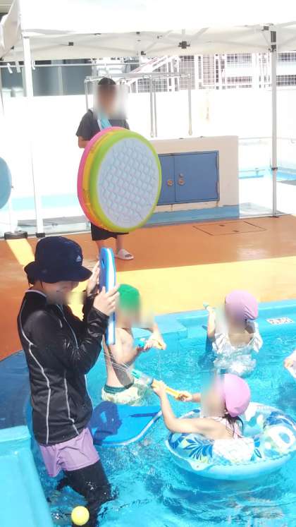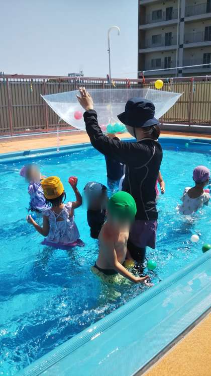 今日もとてもプール日和!プール開放で存分に遊びました。水をかけたり、玉入れをしたりと、楽しそうでした!