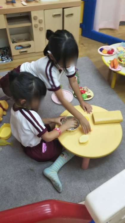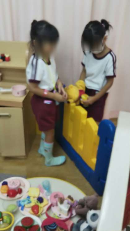 今日は5時までのお友達が二人。仲良くままごとをしていました。