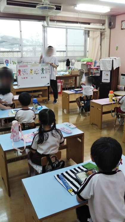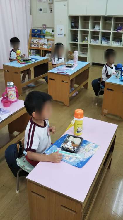 その後、実際に黒潮弁当をみながら、「おにぎりは黄色!」「エビフライは何色かな?」と三色入ってるかを確認しました。みんなしっかり食べてスーパーたべるんじゃーを目指してね☆