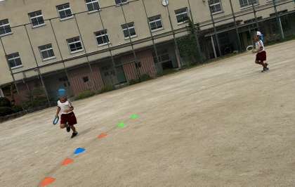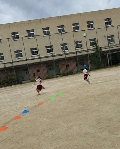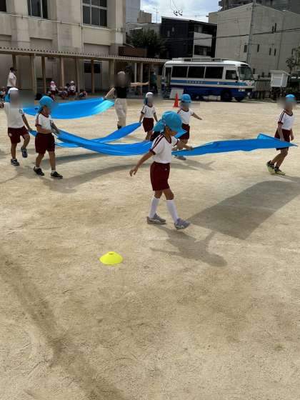 今日は小学校に運動会ごっこをしにいくことができました。リレーをしたり、サーキット遊びをしたり、布やバルーンをしたりして頑張っていました。