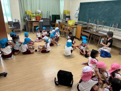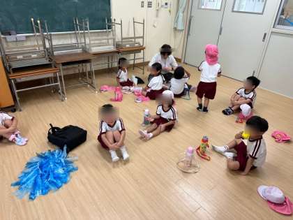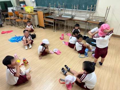 小学校の校長先生が、エアコンをつけた教室を子どもたちの休憩の場所として貸してくださいました。まだまだ暑い中、頑張っていたこどもたち、涼しいお部屋でゆっくりお茶を飲んで休んで元気回復!!