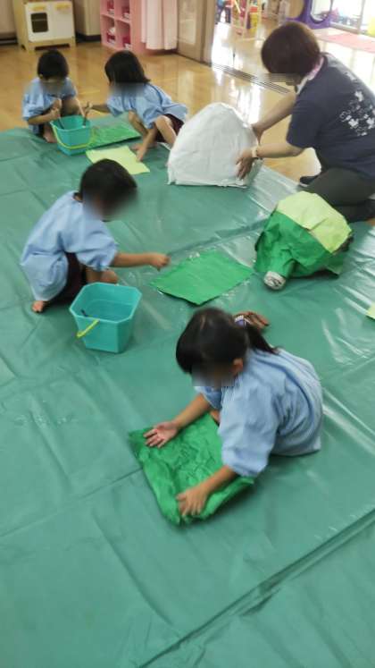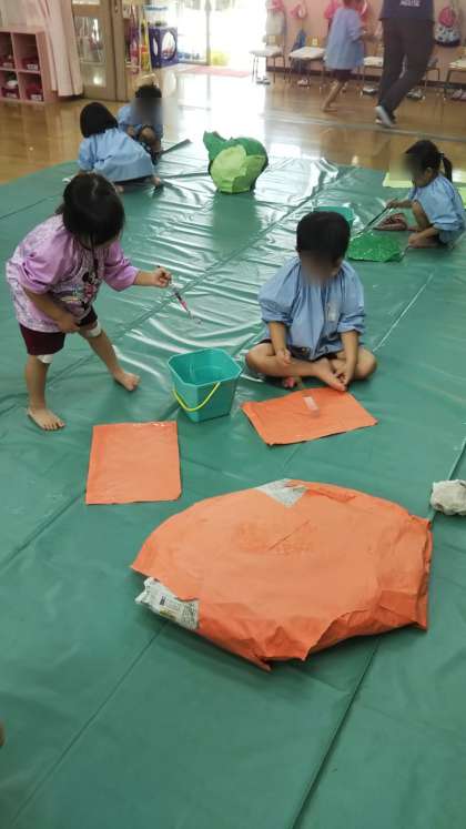 さくら組がみんなで何かを製作中。