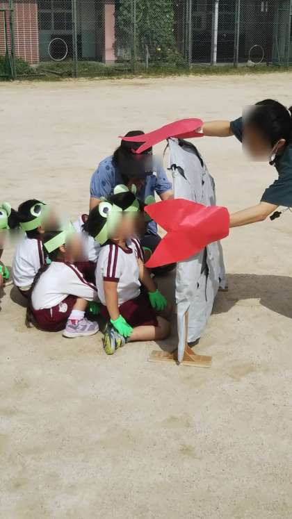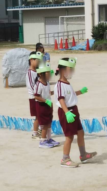 今日もさくら組のカエルさんは元気に遊んでいました。運動会を楽しみにしています。