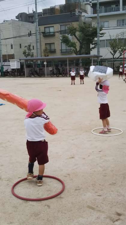 さくら組の美味しそうなおにぎりやおかず。今度はあやめ組が興味津々に見ていました。