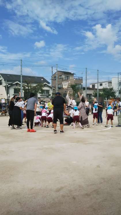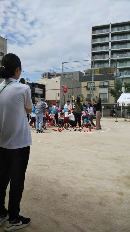 今年はおうちの方との競技も復活です!さくら組、あやめ組一緒に玉入れをしました。