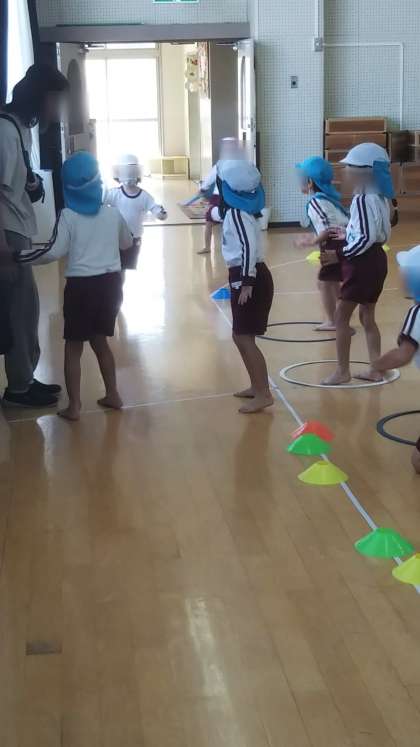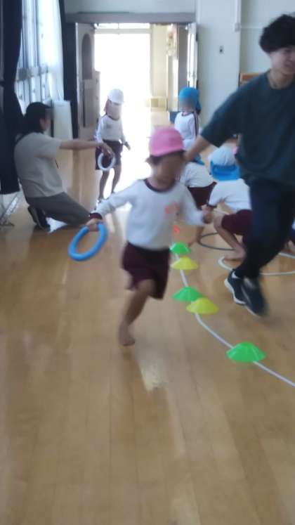 運動会であやめ組のリレーを見たさくら組さん。ずっとしたいと言ってました。そこで今日はあやめ組と一緒にリレーをしました。ルールを教えてもらいながらの混合リレー、楽しそうでした。