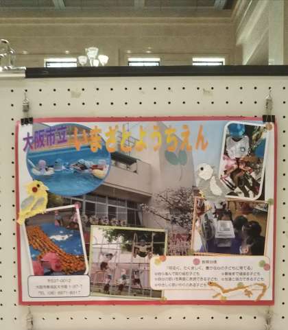 夏にもあった、市役所での大阪市立幼稚園手作りポスター展が今日から20日まで開催です。大阪市52園の幼稚園の紹介ポスターが展示されています。子どもたちに手伝ってもらった秋の壁面も飾ってきました♪
