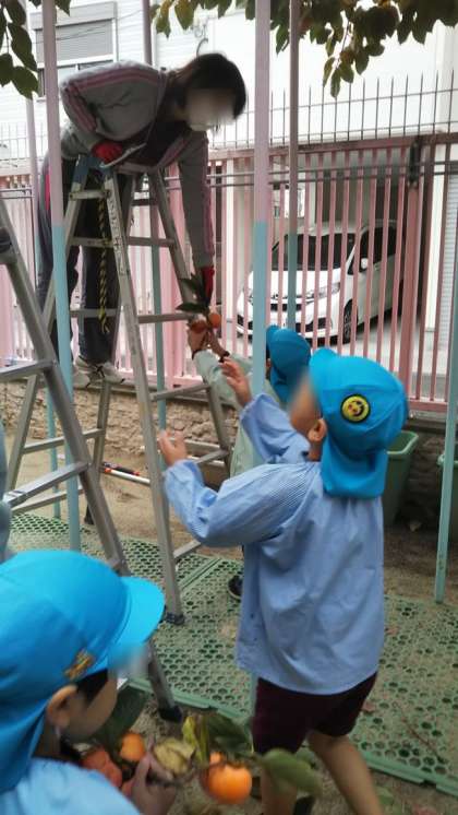 今年もたくさんの柿ができました。子どもたちと収穫です。いくつできてるかな?楽しみだね♪