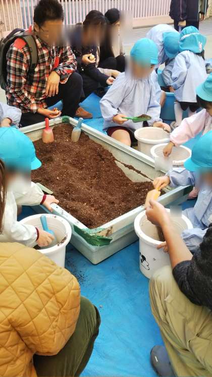 今日はおうちの方とチューリップの球根を植えました。きれいな花が咲きますように!楽しみですね。