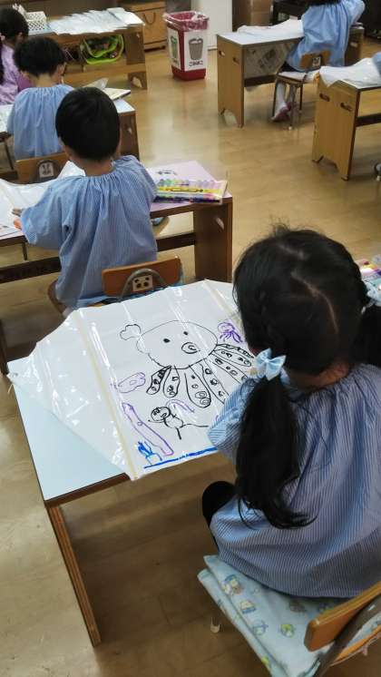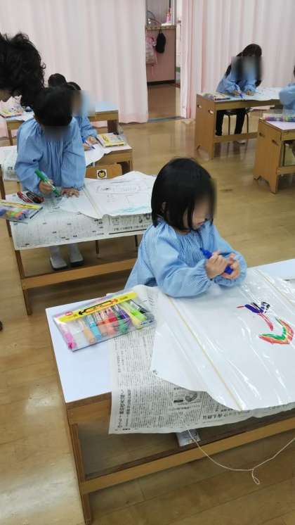 さくら組が凧に絵をかいていました。12月には皆で小学校に凧あげに行く予定です!たか〜く上がるといいね!