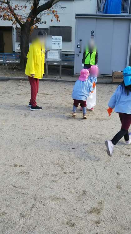 近隣の公園に掃除に行きました。地域の方が、火バサミや袋などを用意してくださって、一緒にしてくださいました。たくさん拾えるかな?