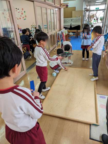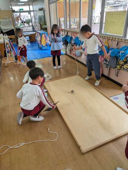 あやめ組にコマ回しブーム到来♪みんなで楽しそうにチャレンジしていました。