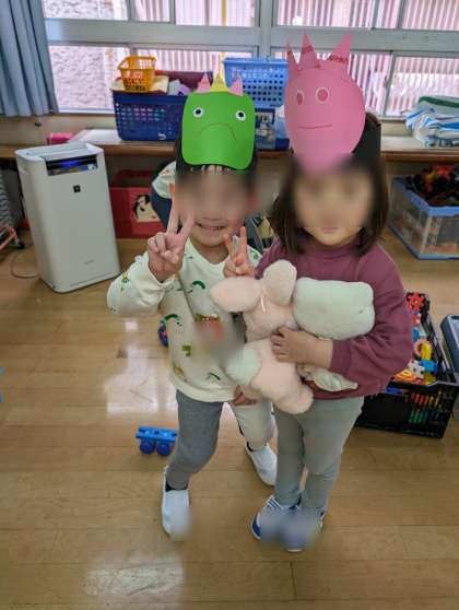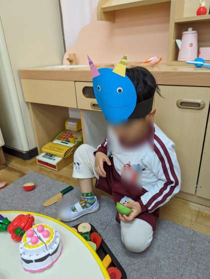 ばらちゃんも鬼のお面を作ってみました♪ 嬉しそうにつけて遊んでいました。