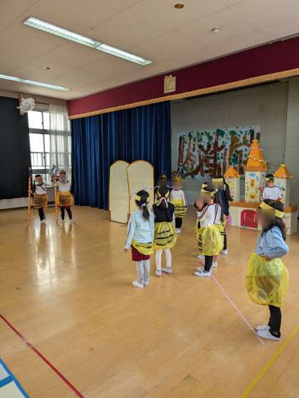 あやめ組も合奏や劇あそびをしていました。明日は気持ちをあわせてできるように頑張ろうね!!
