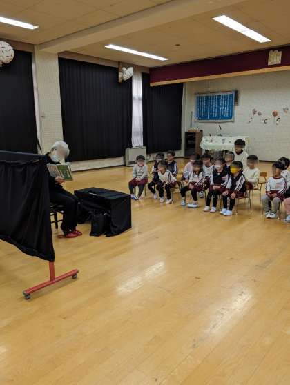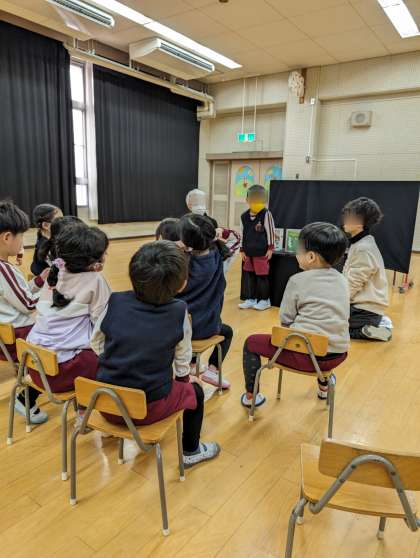 今日は今年度最後のおはなし会でした。さくら組さんと、ばらちゃんも一緒に参加。とても集中して聞いていました。最後にありがとうございましたの気持ちをこめてプレゼントもお渡ししました。来年もたくさんお話を聞かせていただけるのが楽しみですね。