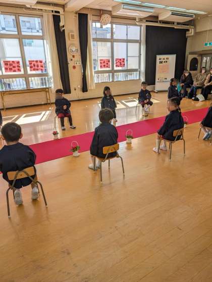 今日は3学期の終業式でした。さくら組さんも今日でおしまい!次はあやめ組さんですね。一人ひとり名前を呼ばれてしっかり返事もして、かっこよかったです。春休み、病気や怪我をしないで元気に過ごして、素敵なあやめ組さんになってね♪