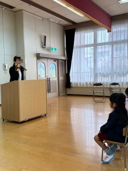 始業式終了後の保護者会では、園長先生から保護者に絵本の読み聞かせをしてくださいました。子ども一人一人のありのままの姿を受け止め、保護者と一緒に子どもの成長を促し、喜んでいきたいという願いを込めて…