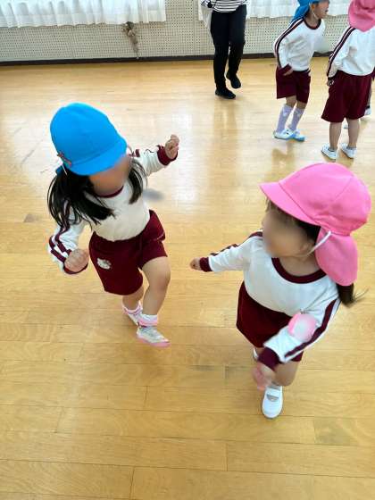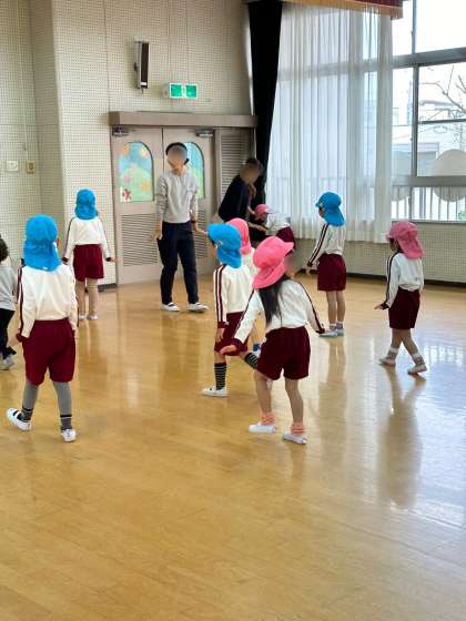 今年度初めての保育参観でした。各クラスの活動の後、遊戯室であやめ組・さくら組合同で遊びました。動物になって動いたり、体操をしたり、ふれあい遊びをしたり…