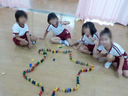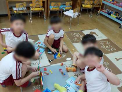 あやめ組では、久し振りの友達との再会に、友達と誘い合って、好きな遊びを楽しんでいる様子がありました。「先生、見てー!こんなのできたよ」や「今、〇〇ちゃんとこれつくってるねん」と友達との遊びを喜んで話してくれました。2学期も友達と楽しい時間をたくさんつくりましょうね♪