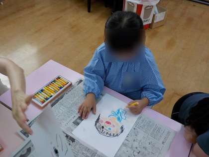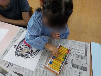 クレパスをしっかりともって塗り、素敵なお顔がかけました♪