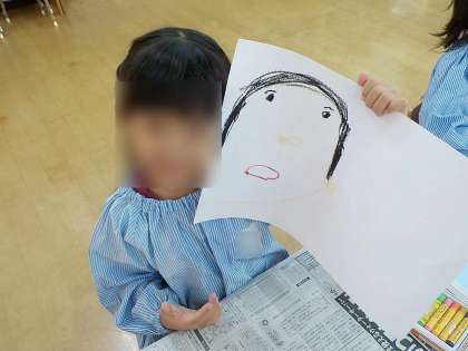 さくら組の子どもたちは、クレパスを使ってみんなでお顔をかきました。