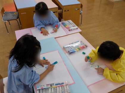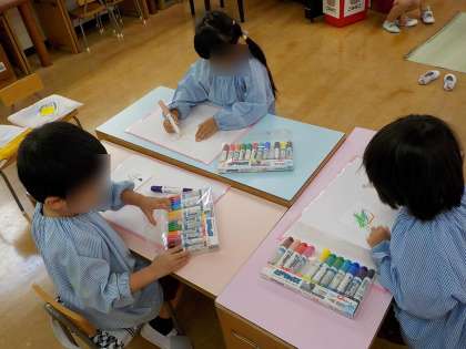 9月15日は敬老の日。さくら組の子どもたちは、おじいちゃんやおばあちゃんに向けてハガキをかきました。