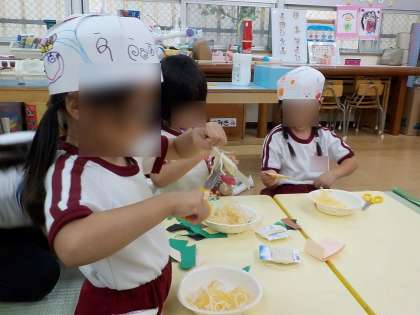 「美味しいラーメンですよ」とごっこ遊びを楽しんだ子どもたちでした。