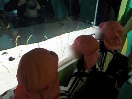 さくら組の子どもたちは、海遊館に行く前に保育室でどんな海の生き物を見たいか話し合っていたので、ワクワクしながら園外保育に向かう姿が見られました。