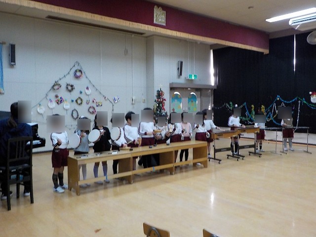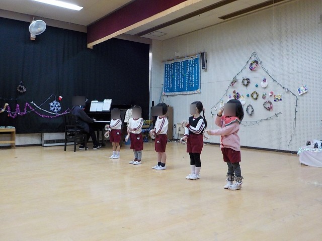 サンタさんから『12月19日に今里幼稚園に遊びにいくよ』とお手紙をもらった子どもたちは、サンタさんが来てくれるのを楽しみにしていました。遊戯室にあがると…サンタさんの姿が見えません。「サンタさん迷っているのかな…」と話す子どもたち。みんなで素敵な合奏や歌、楽器遊びをしてサンタさんを待っていると、綺麗な音が聞こえたのか、サンタさんが遊びにきてくれましたよ♪