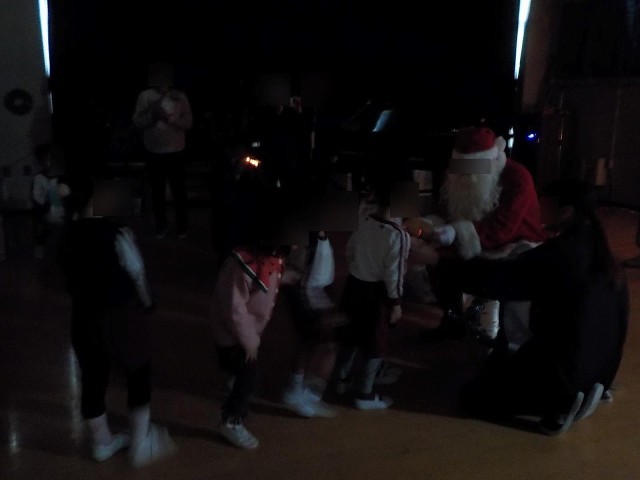 「サンタさんが来てくれた!」と大喜びの子どもたち。サンタさんに聞きたかったことを質問したり、ハイタッチをしてもらったり、プレゼントをもらったりして素敵な時間を過ごしました。お礼の歌をうたうとサンタさんが拍手をしてくれました♪